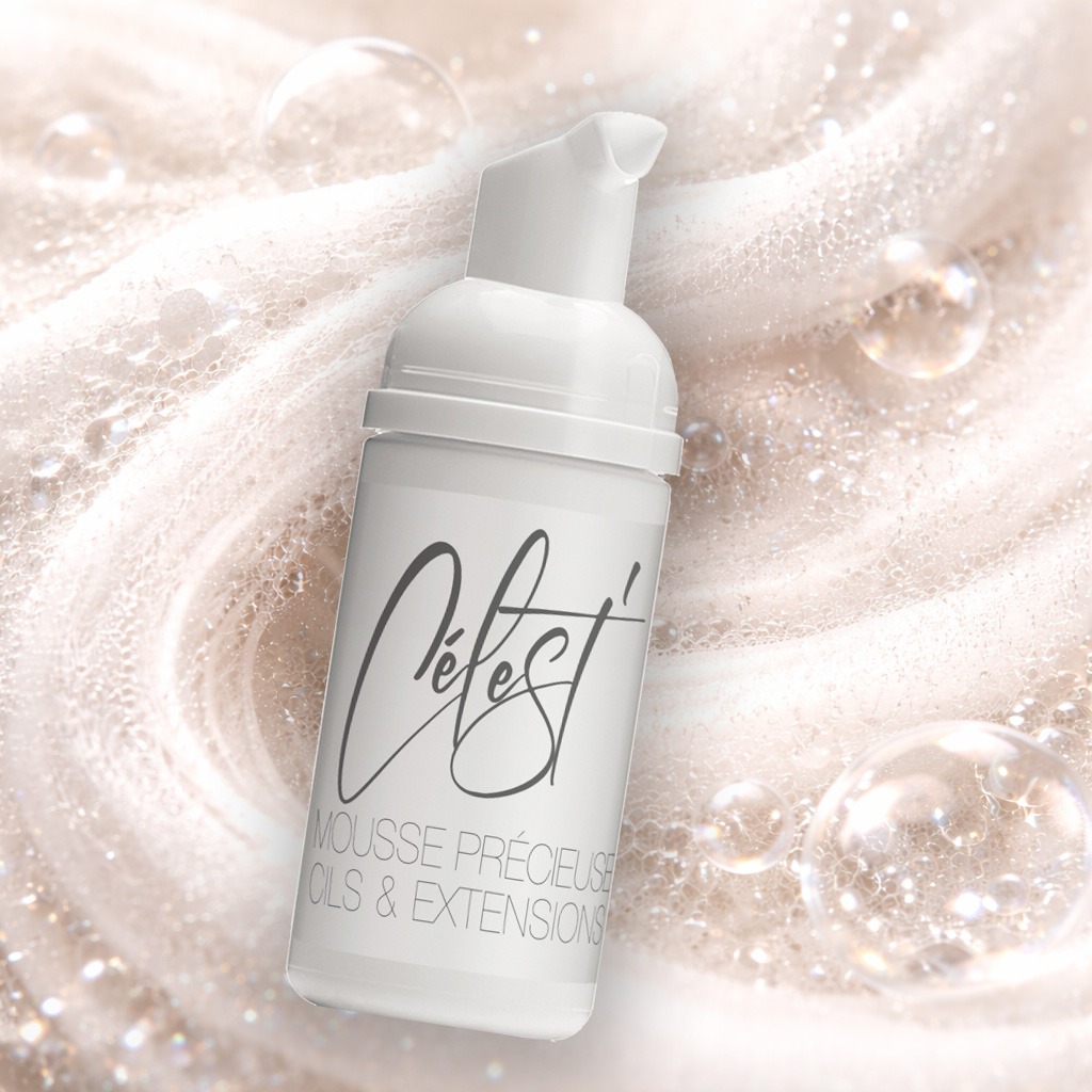 Célest' Mousse Précieuse est le premier nettoyant pour cils & extensions formulé en France à allier performance professionnelle, pH neutre et véritable soin fortifiant.